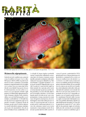 parenti, è il Wetmorella nigropinnata, tal- per la famiglia Labridae,. In tal senso possesso di un piccolo e tranquillo ac-