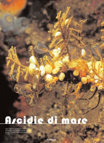 Ascidie di mare Ogni millimetro quadrato di substrato da colonizzare viene sfruttato da queste ascidie di mare del genere Didemnum e Pycnoclavella. Foto: D. Knop 18 CORALLI