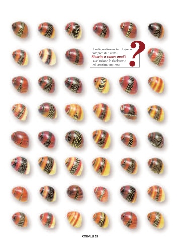 nel prossimo numero. ? Uno di questi esemplari di guscio compare due volte.. Riuscite a capire qual’è La soluzione la riveleremo CORALLI 21
