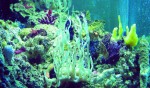 Uno sguardo nella zona criptica di un acquario di barriera trizonale di Steve Tyree. Questo sistema ha sostituito la schiumazione con le spugne viventi. Le spugne crescono vigorosamente ed inoltre in questa zona si trovano anche ascidie di mare e conchiglie filtranti.