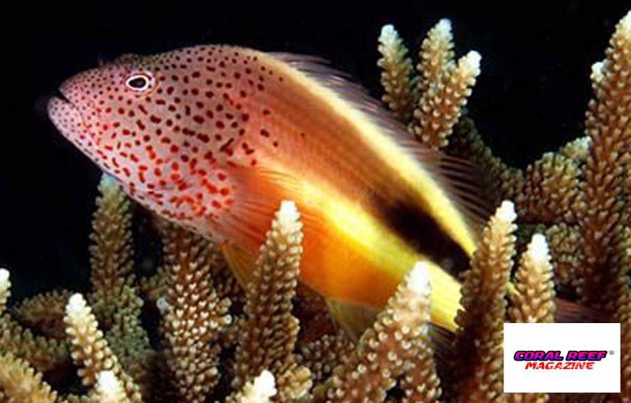 Paracirrhites forsteriIl pesce falco di Forster da adulto raggiunge una misura di circa 18 cm di lunghezza, ma occasionalmente può arrivare anche a 22 cm. Il corpo è giallognolo e presenta una caratteristica striatura nera o marrone nella metà superiore del corpo; nel complesso la sua colorazione è comunque estremamente variabile e dipendente dall’umore. La testa è più chiara ed evidenzia una tipica livrea punteggiata. La forma giovanile varia secondo la regione; la metà superiore del corpo è di colore oro verdognolo, mentre il ventre può essere biancastro o rossiccio. Questo stadio giovanile era stato in passato descritto come una specie a se stante (“Paracirrhites typee”). I pesci falco hanno varie denominazioni popolari che a volte fanno riferimento alle appendici cespugliose sugli strali delle pinne dorsali. Nel caso di P. forsteri, però, queste sono meno spiccate rispetto ad altri pesci falco.