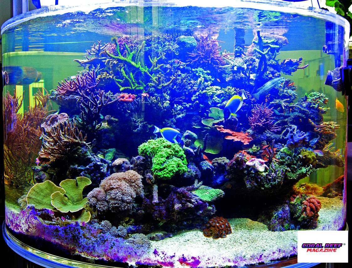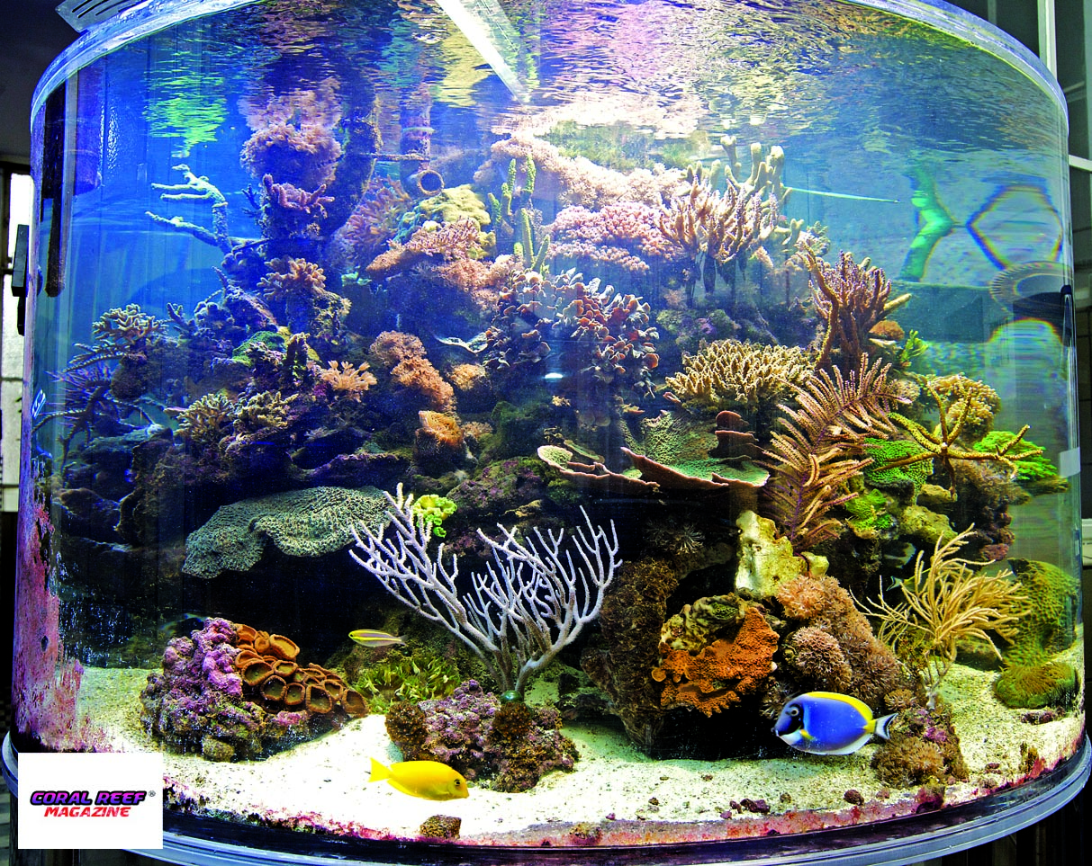 L’acquario qui presentato è stato realizzato dalla ditta Schuran, specializzata nella costruzione di vasche in materiale acrilico. In ogni caso poco polarizza gli acquariofili marini più dell’interrogativo se un acquario in materiale sintetico nei confronti di una comune vasca di vetro rappresenti un incubo o la cosa migliore. A favore del materiale sintetico depone la leggerezza, la facile formatura, la trasparenza e la stabilità, contro invece la sensibilità ai graffi e il prezzo elevato. Non c’è dubbio comunque, che nulla appare più imponente di un enorme acquario circolare, posto nel mezzo di una stanza e il cui contenuto può essere ammirato da ogni lato. L’elevata permeabilità alla luce di questo materiale fa si che i colori dei pesci e dei coralli appaiono più accesi e vivaci, rispetto a quanto avviene con il vetro di silicati dello stesso spessore.